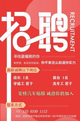 招聘洗车工(武安南环迎宾商贸城)